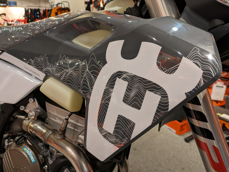 FE350の上級グレードモデルでホイールはツヤありのエキセルリム製ホイールにハンドルはプロテーパーハンドルとPRO専用パーツが付いている他、ディスクガード(FACTORYver.)やアンダーガード、ラジエーターファンなどのオプションも初期装備です!